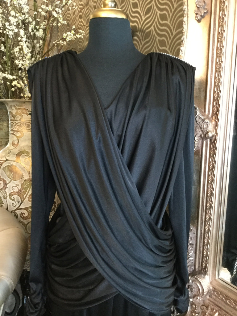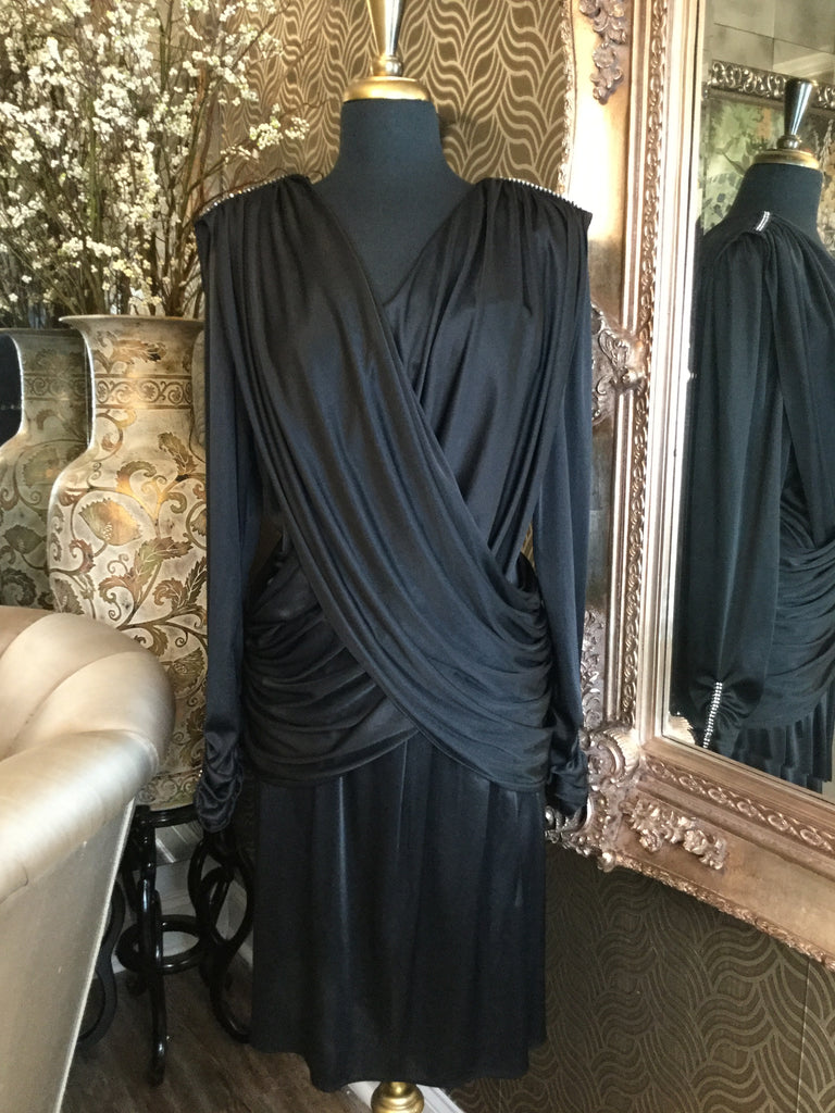 Vintage black jeweled drapey dress